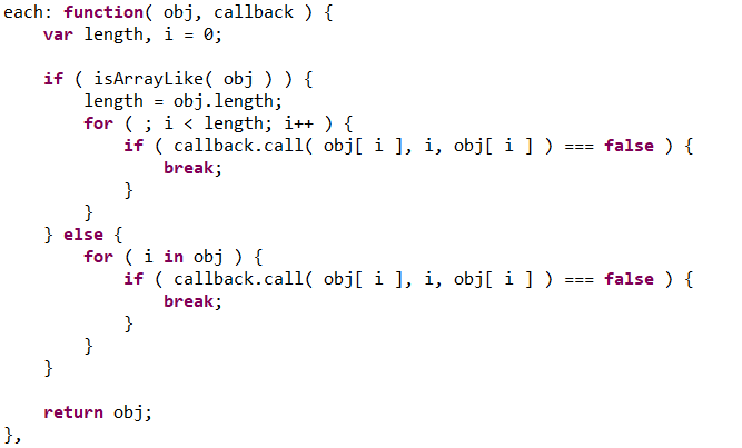 또 특이한 점은 each()의 리턴 값이 false일 경우 반복을 중지한다는 내용이다.